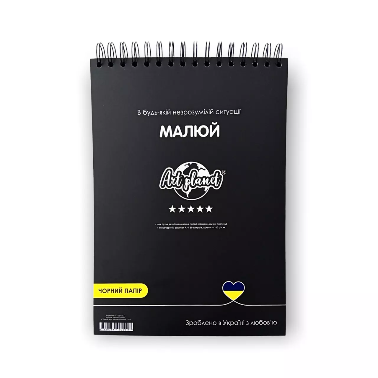 Альбом для скетчинга и рисования черная бумага А4 160 г/м2 50 листов скетчбук Art Planet