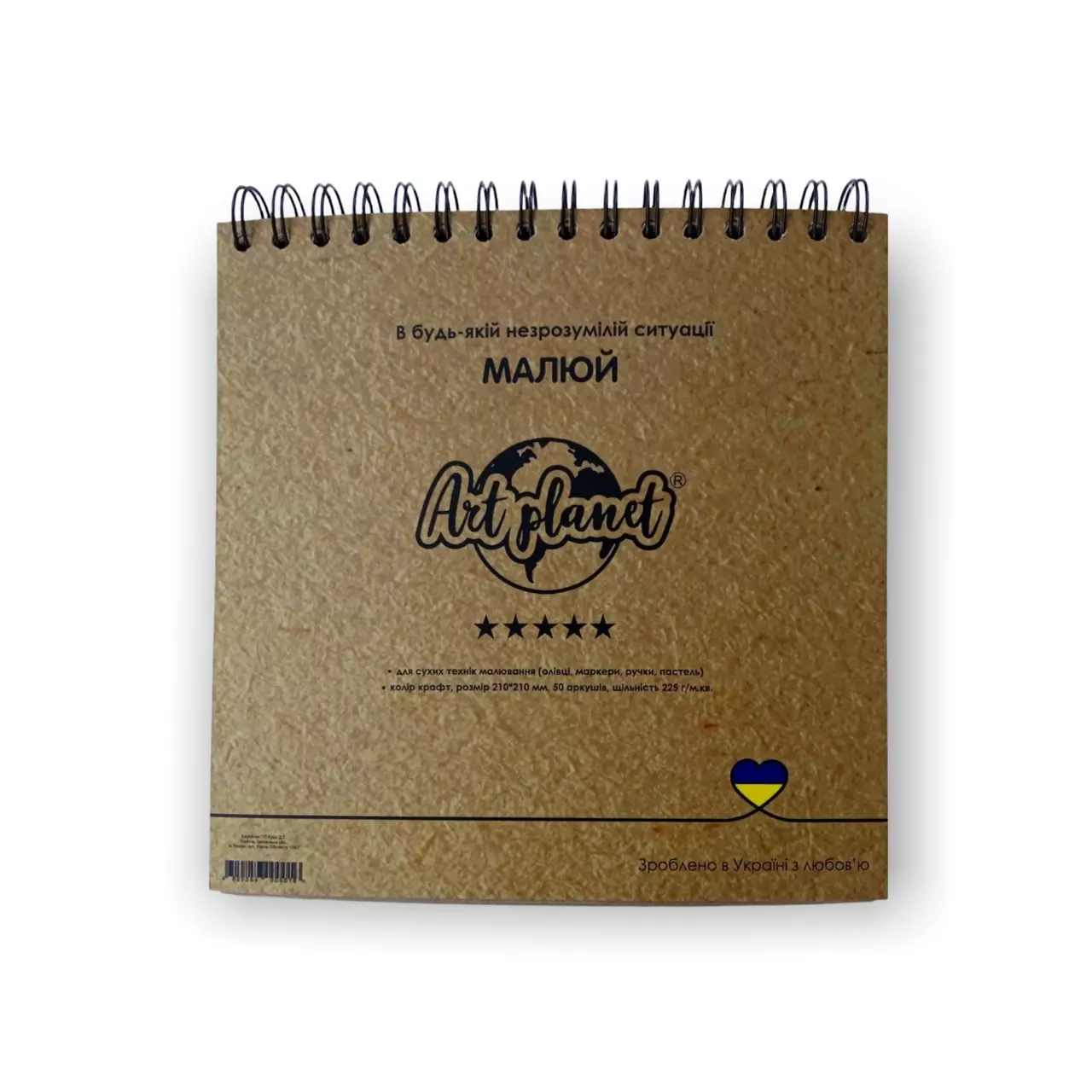 Альбом для скетчинга и рисования крафт квадрат 225 г/м2 50 листов скетчбук Art Planet