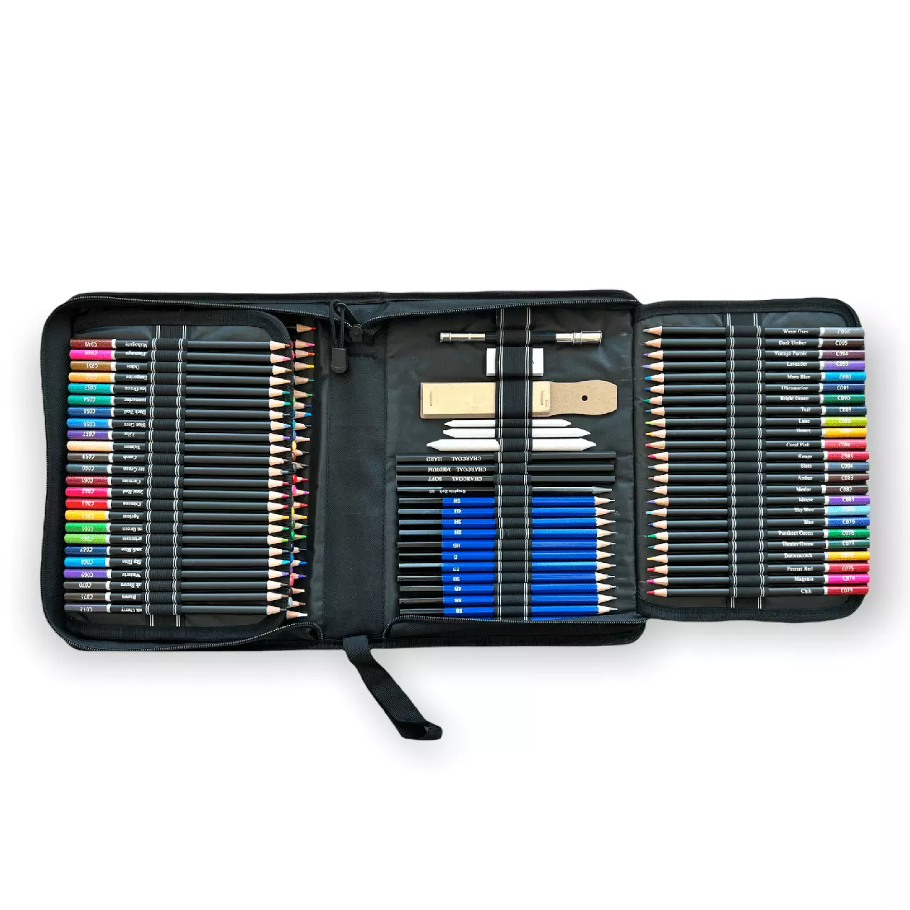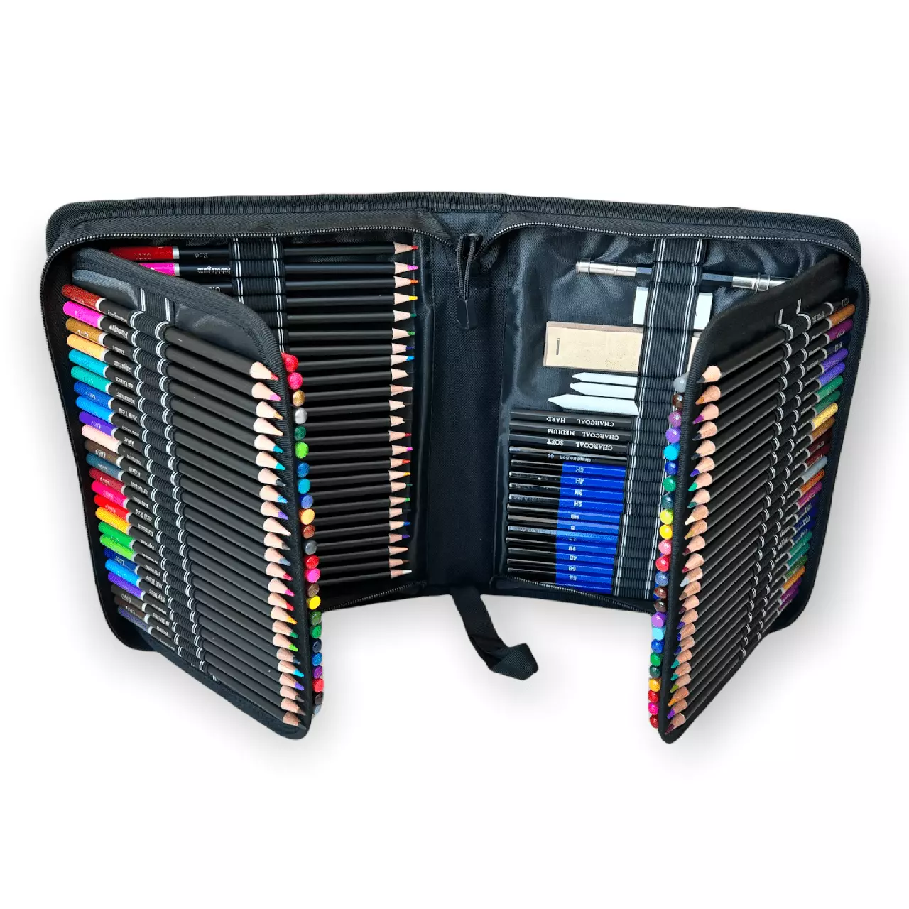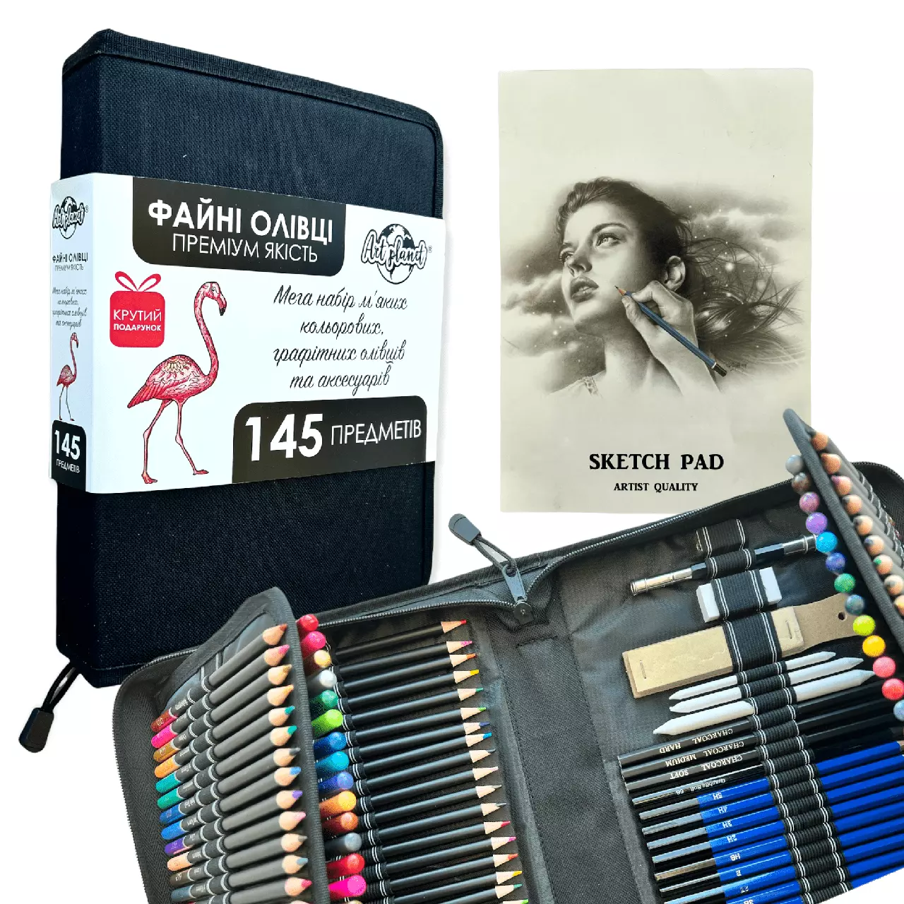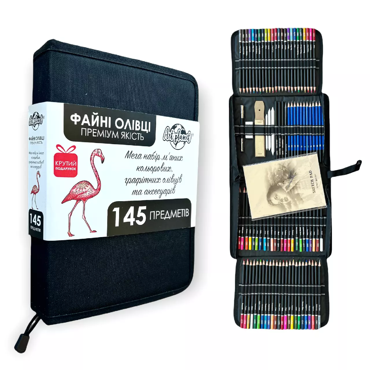 Набор цветные и графитные карандаши 145 предметов подарочный набор в нейлоновом чехле Art Planet фламинго