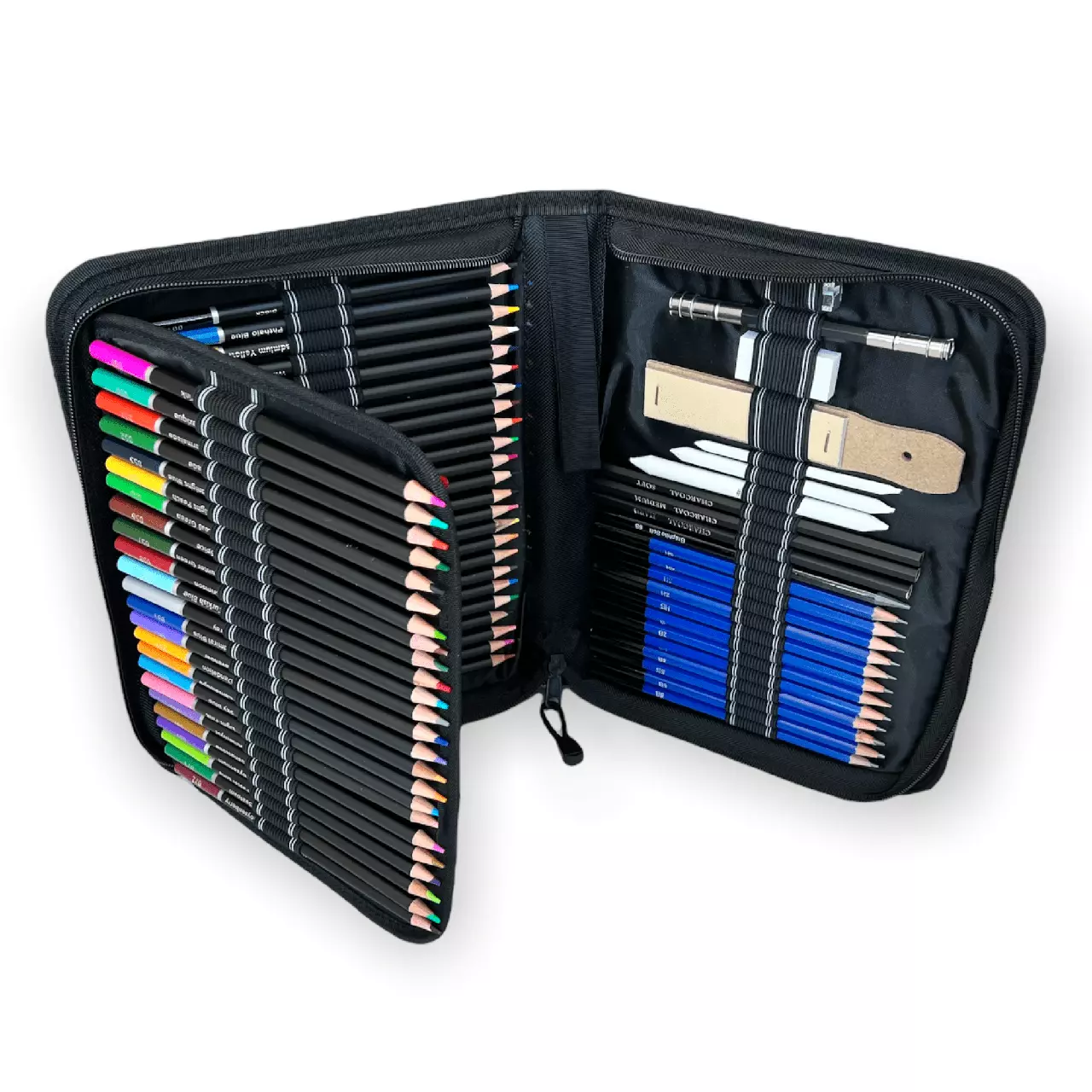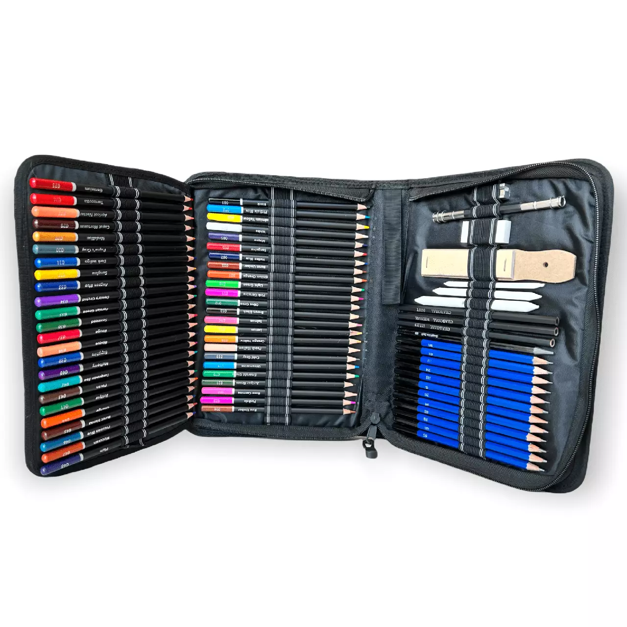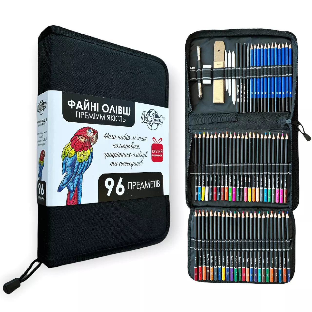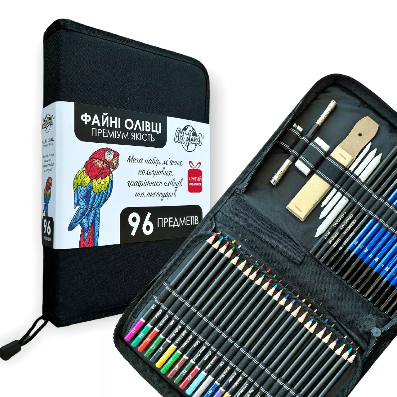 Набор цветные и графитные карандаши 96 предметов подарочный набор в нейлоновом чехле Art Planet папугай